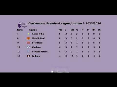 CLASSEMENT PREMIER LEAGUE JOURNEE 3 2023/2024 YouTube